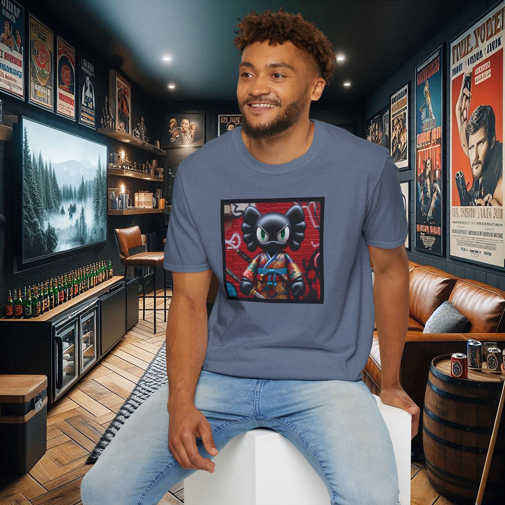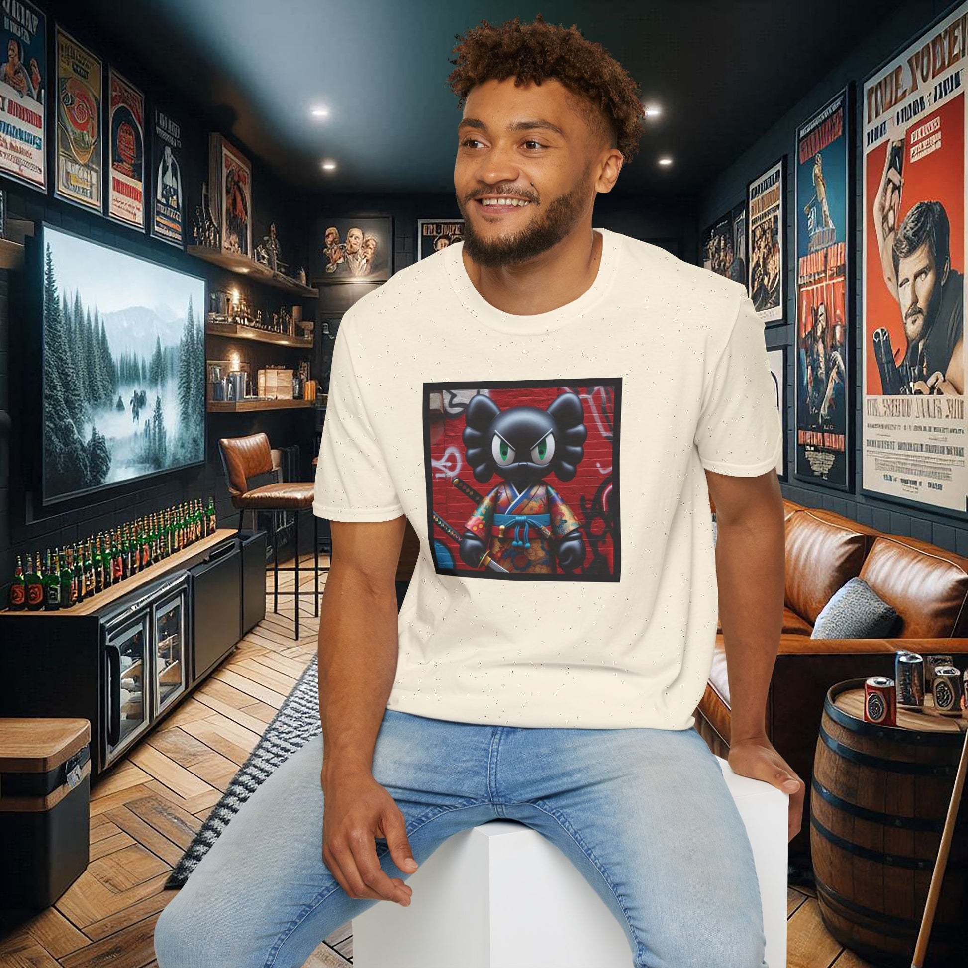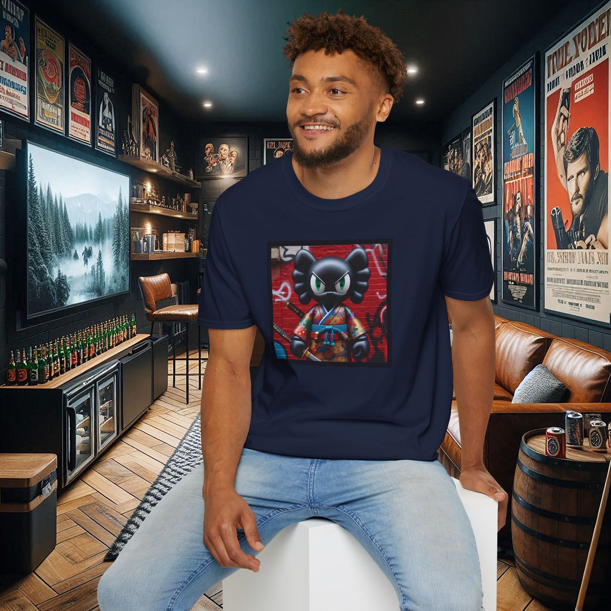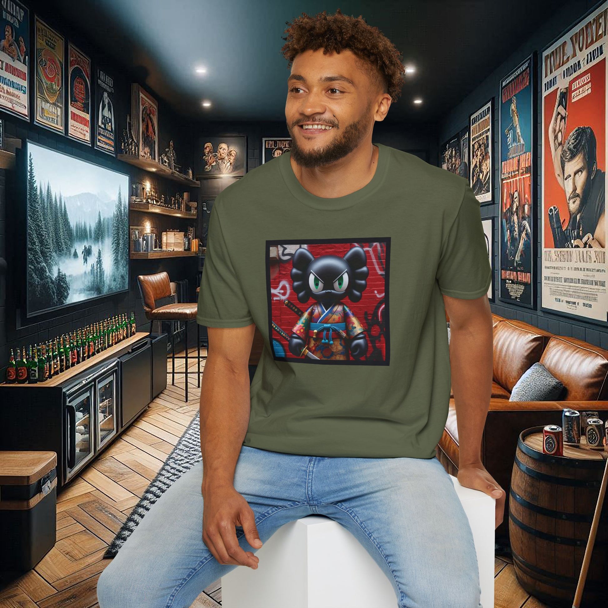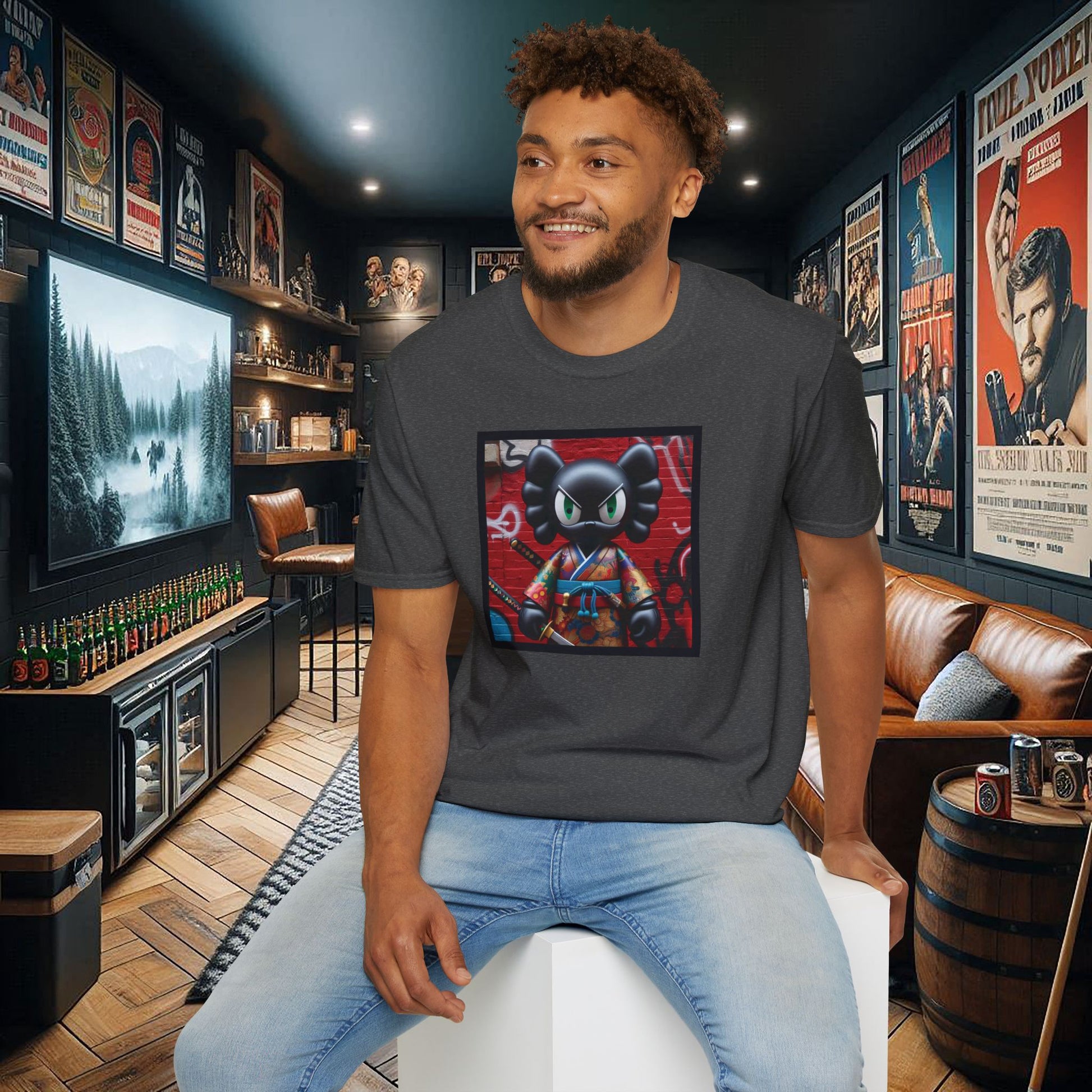 Samurai Cat Softstyle T-Shirt with Urban Graffiti Design