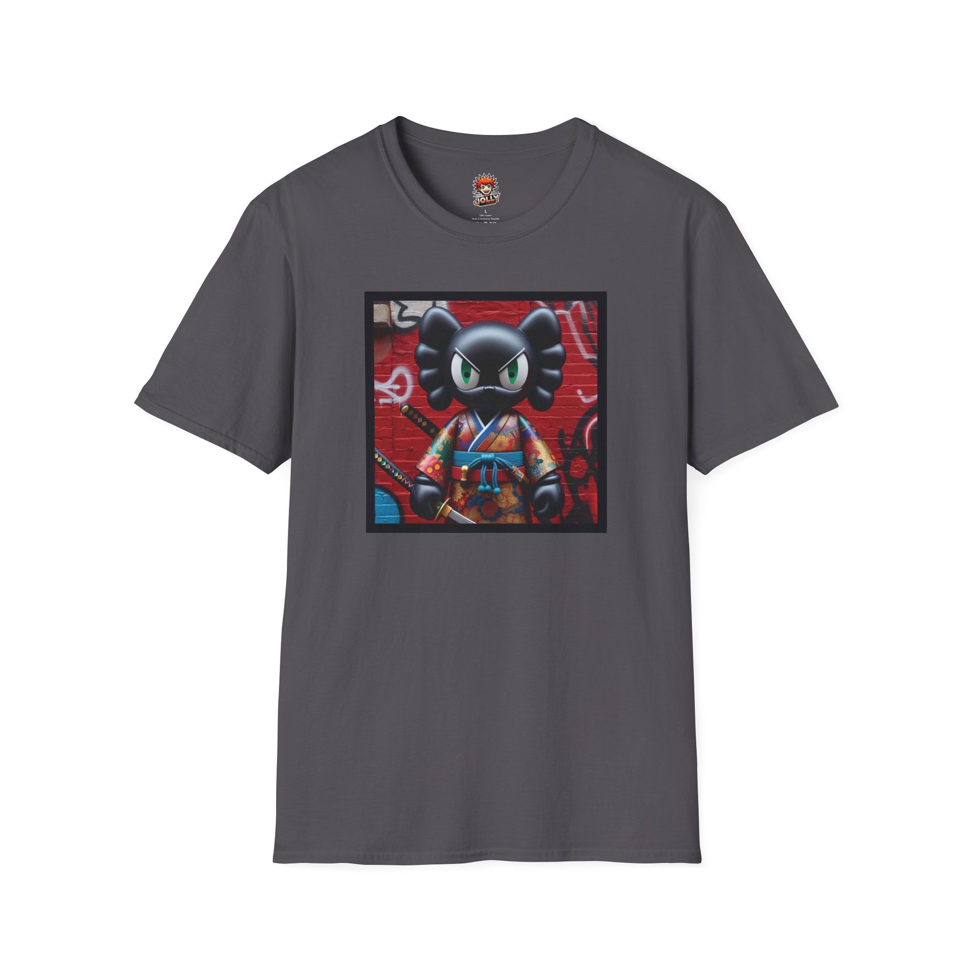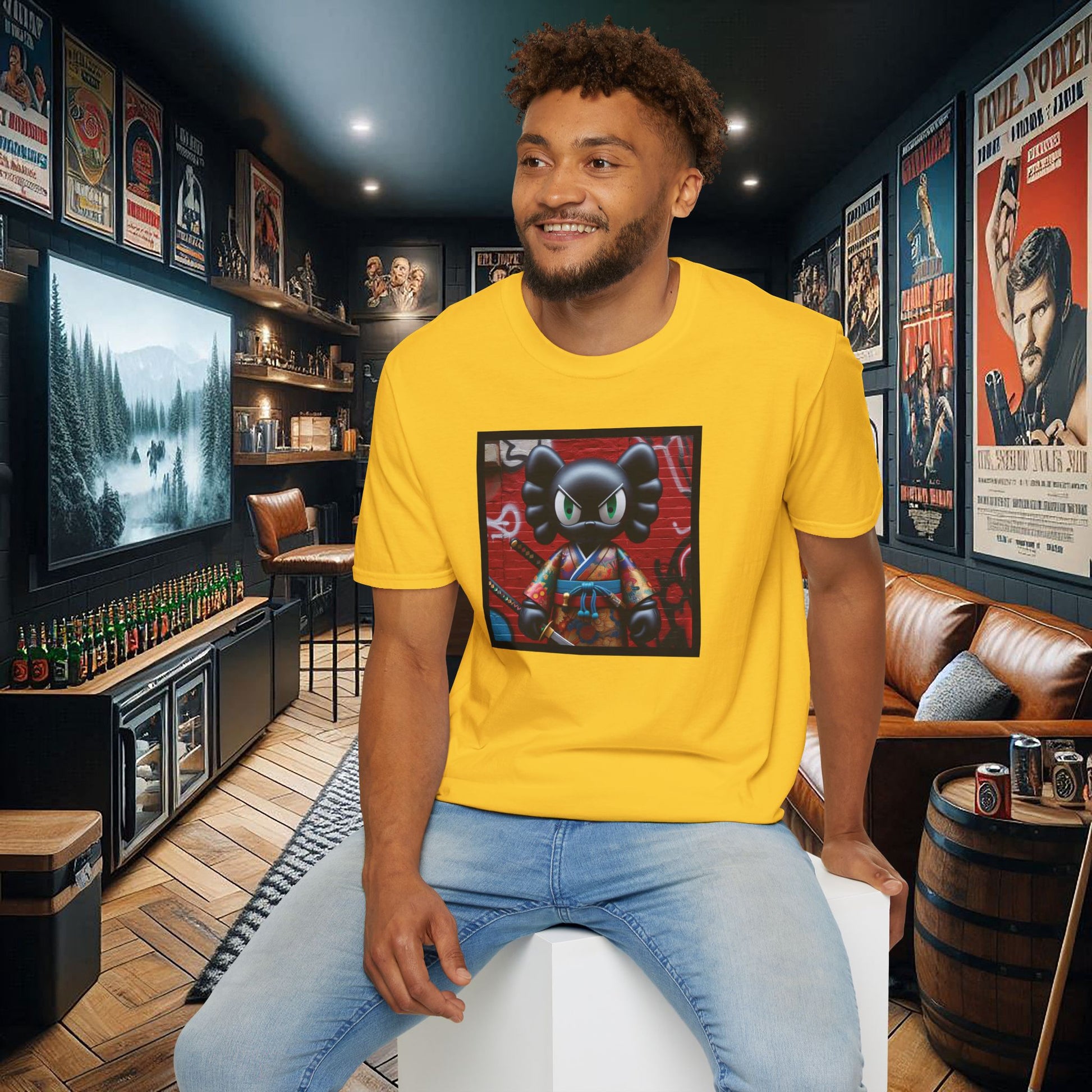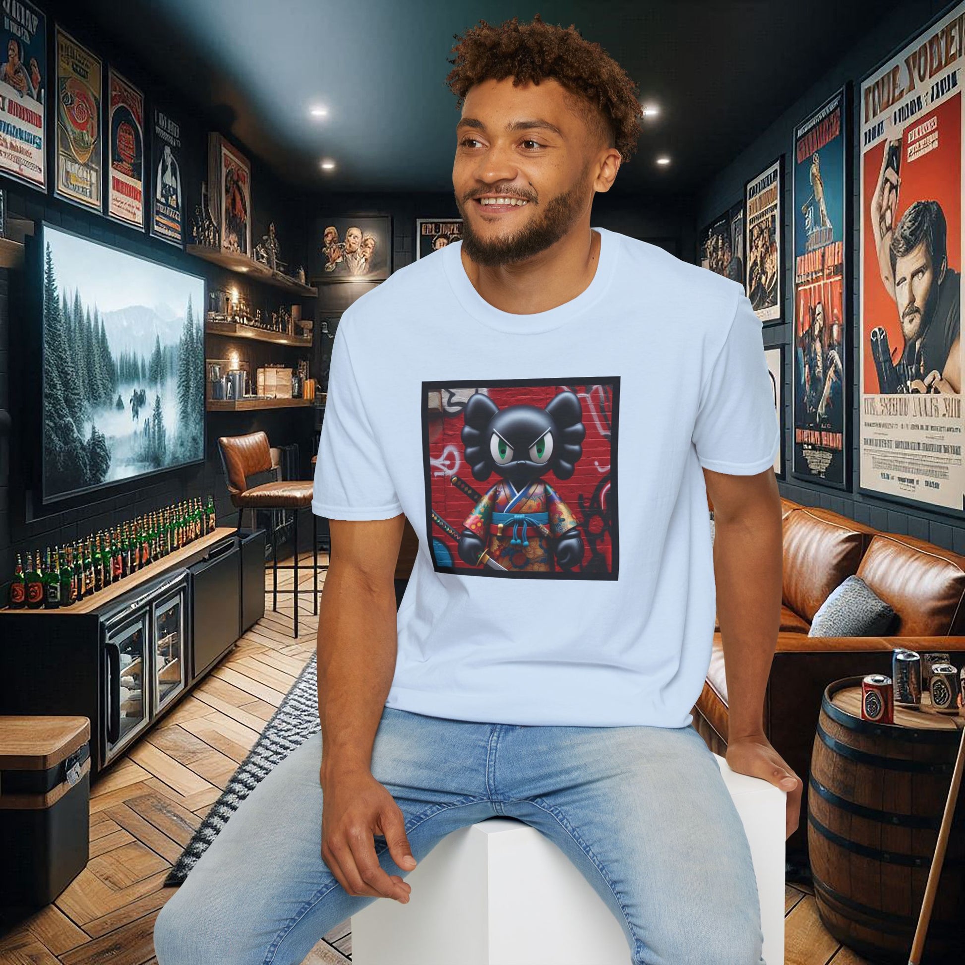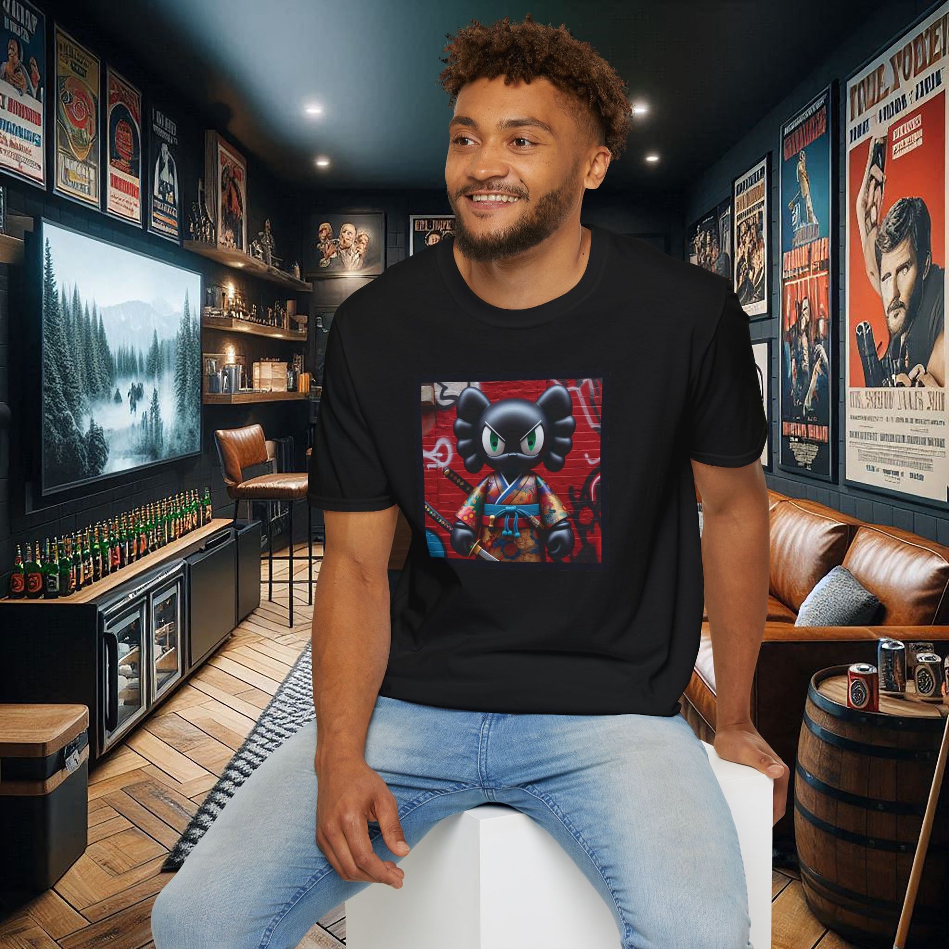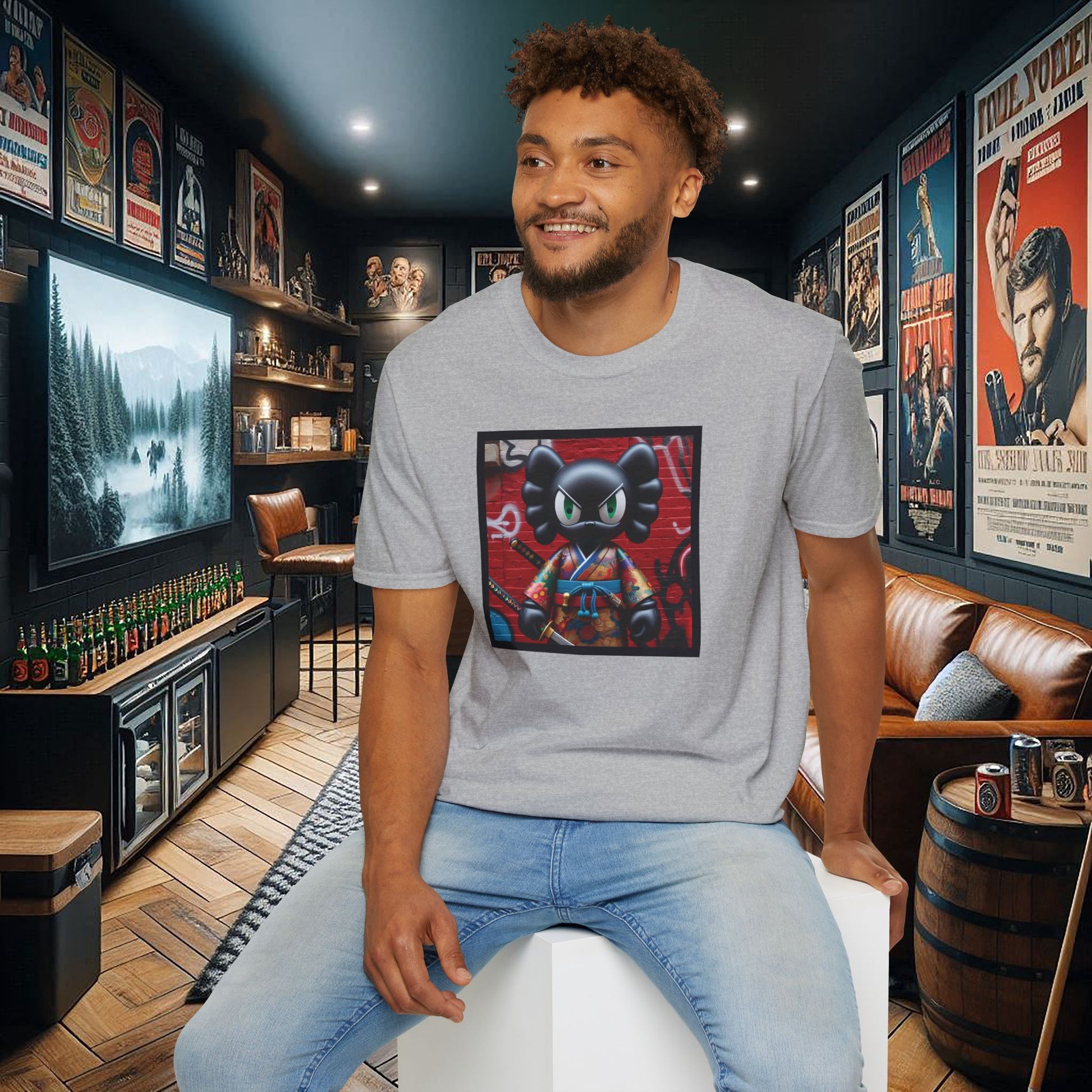 Samurai Cat Softstyle T-Shirt with Urban Graffiti Design